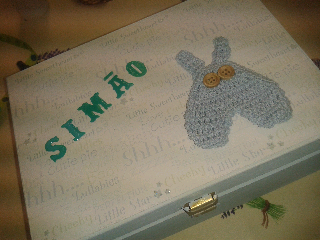 Mais uma linda caixa forrada com papéis de scrapbooking, para um bebé muito pequenino :)